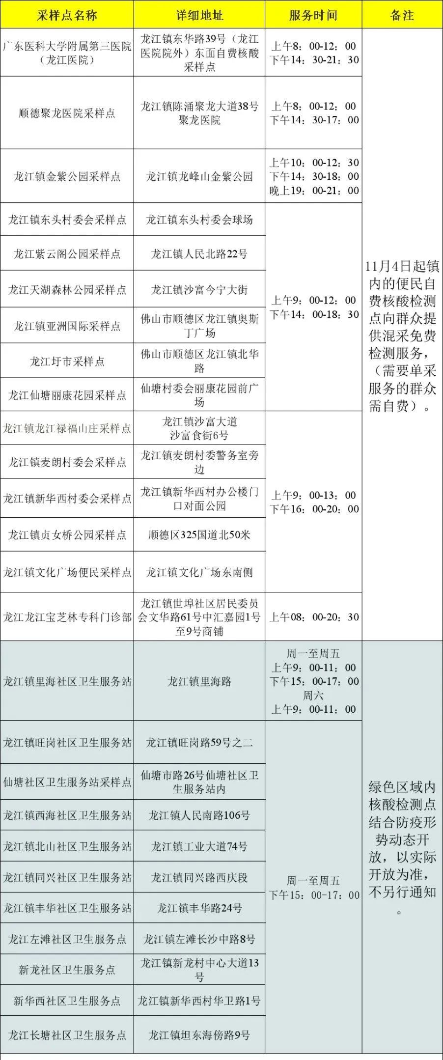 > 顺德乐从镇11月25日(星期五)16时至21时将免费提供核酸检测服务