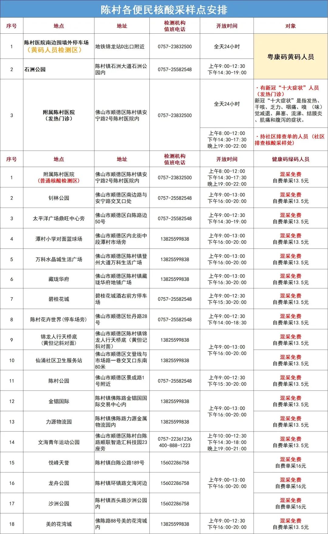 4、粤康码黄码人员请全程佩戴口罩,前往陈村医院南侧围墙外停车场(黄码人员检测采样专区)、石洲公园进行核酸检测采样。红码人员请迅速联系所属村(社区)报备,请勿前往免费核酸检测点。点击查询→陈村镇疫情防控报备电话
