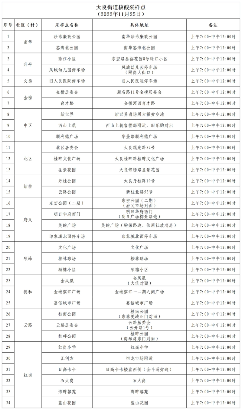 11月25日(星期五)上午7:00-中午12:00时(采样点详见附表1)。