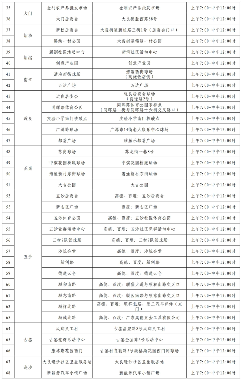 (七)本轮核酸检测期间,大良街道各便民核酸采样点将如常开放。
