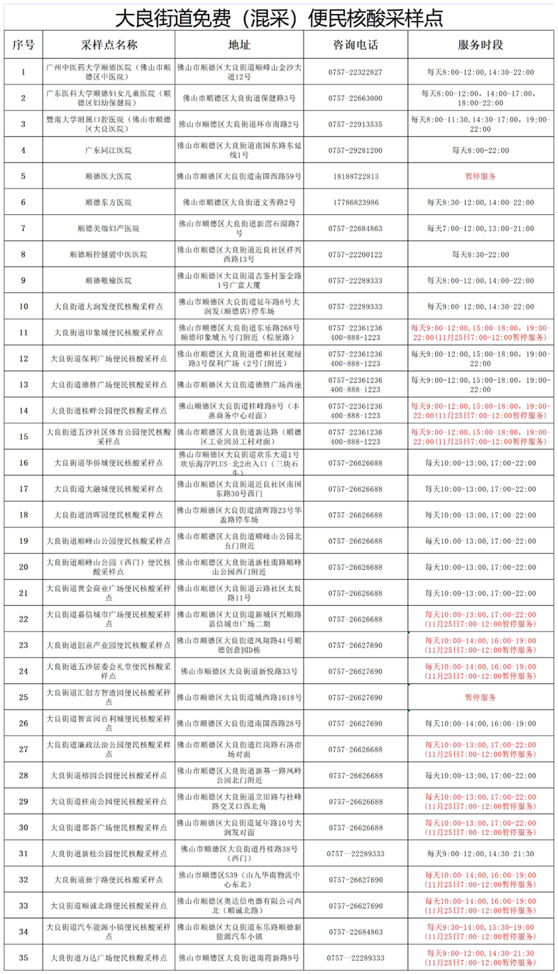 11月25日(星期五)上午7:00-中午12:00时(采样点详见附表2)。