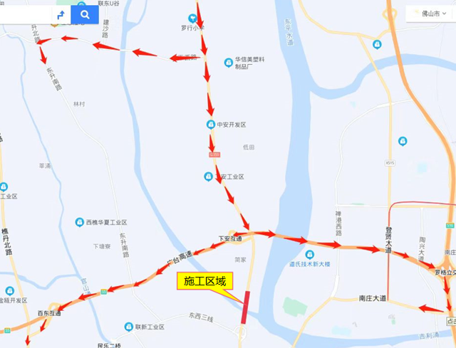 或者提前从樵金中路转至东西三线至东升南路至丹建路至罗下西路绕行;