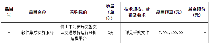 佛山市公安局交警支队交通数据运行分析建模平台项目招标公告