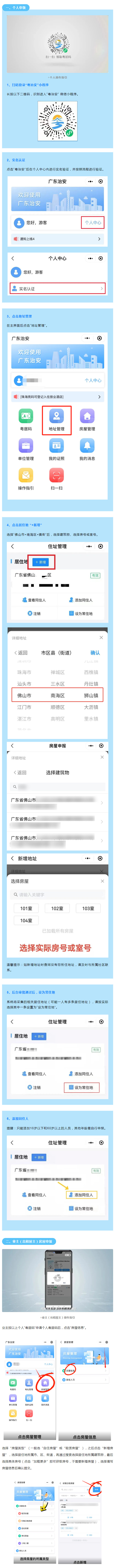 1.群众在申报居住信息时,如发现房屋地址与“粤居码”中使用的标准地址不一致的,应积极向公安机关反馈,协助公安机关规范标准地址。若出现无法搜索居住地址的情况,请耐心等待,待标准地址入库后,再进行居住地址申报。