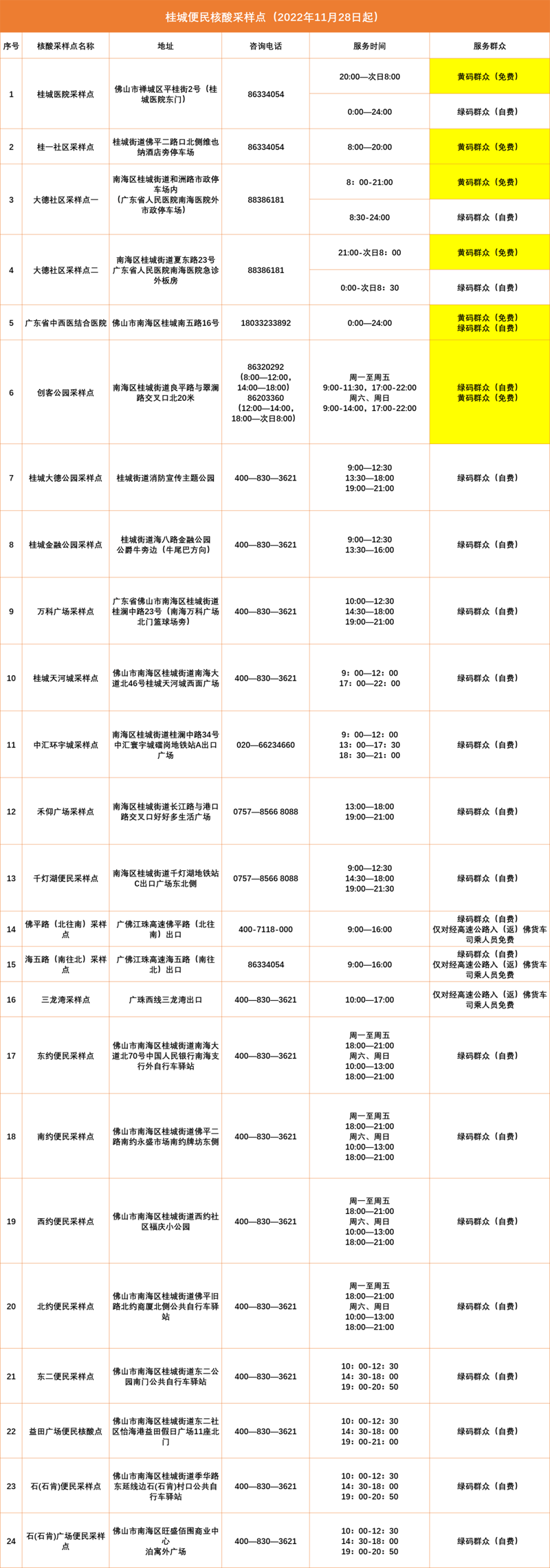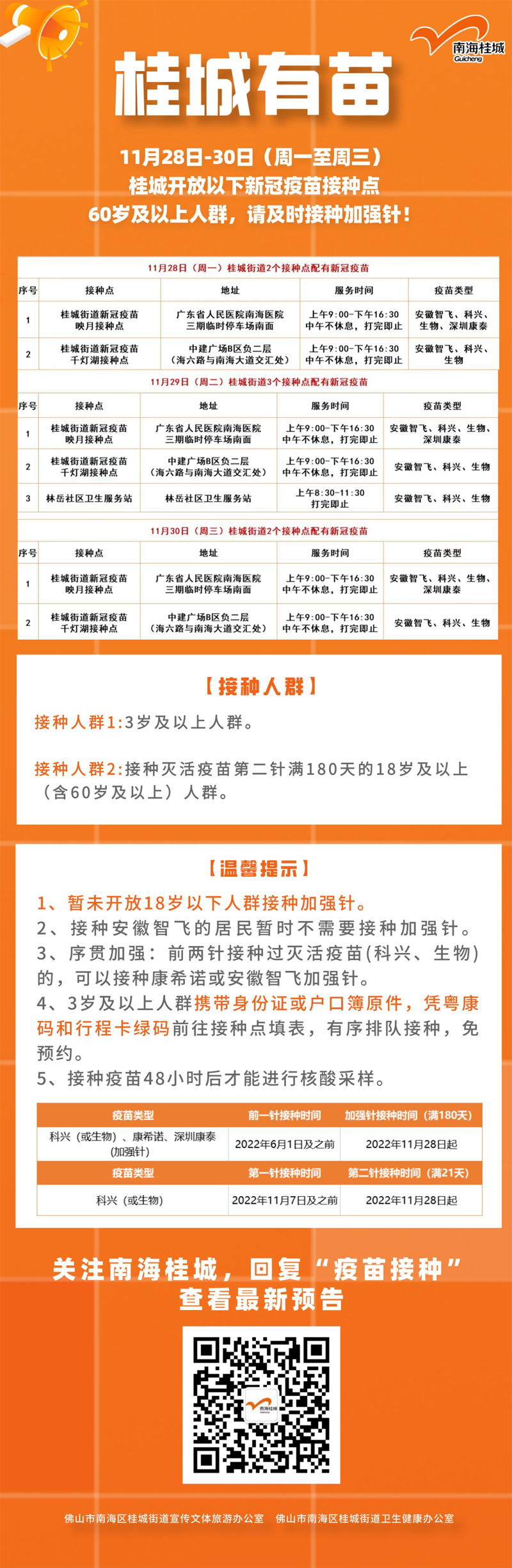 南海桂城11月28日起核酸检测、新冠疫苗接种点安排→