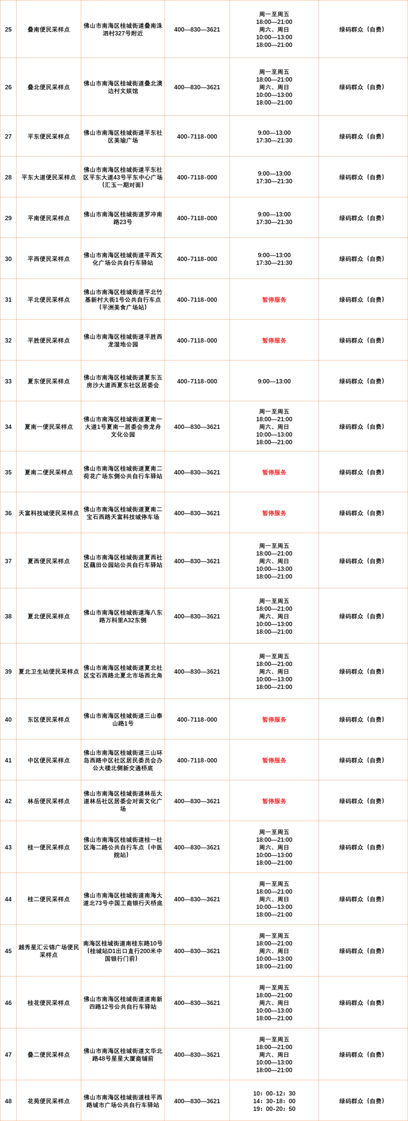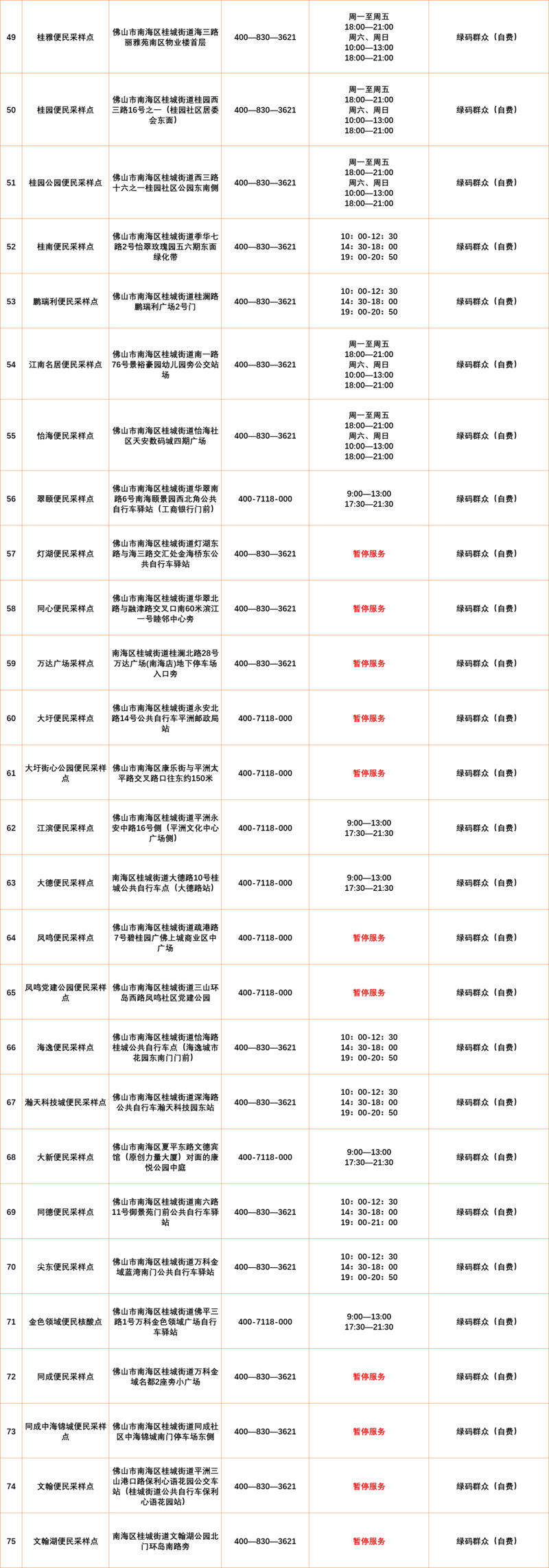 三、全镇核酸检测便民采样点每天定时提供服务,并根据实际需要增设企业、村(社区)检测点及黄码检测专区,详细安排会提前公布,请广大市民密切留意“乐从发布”微信公众号。便民核酸采样点具体见文后。