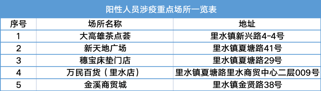 11月26日0-24时,里水新增8例阳性个案。以下是重点场所一览表。