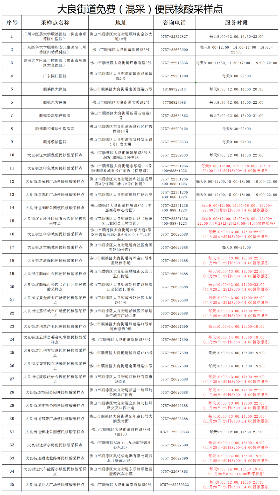 2.大良街道核酸采样点(2022年11月28日-11月29日)