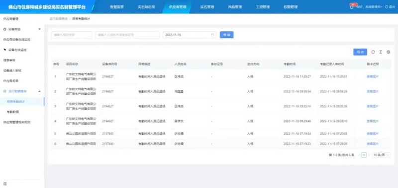 实现监管方对项目下的人员班组、进退场、合同、管理人员到岗及普通工人考勤等统一化管理;