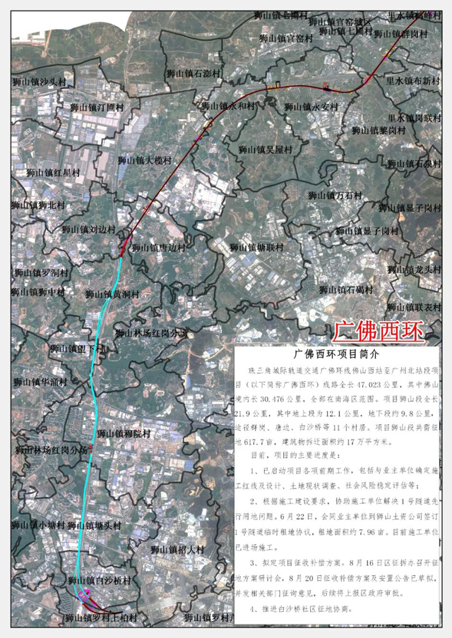 11月27日,狮山已基本完成辖区内广佛环线城际轨道交通佛山西站至广州北站段项目(以下简称为“广佛西环”)、广州至湛江高铁项目(以下简称为“广湛高铁”)等两个核心交通项目的征地工作,项目整体征地完成率均超90%,部分工程控制性关键点位已交付开工建设。
