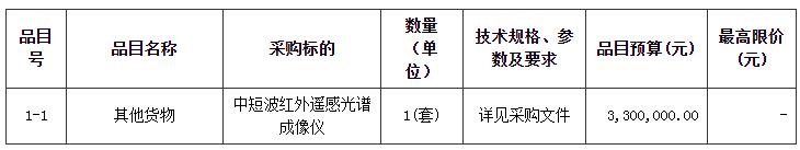 项目名称:中短波红外遥感光谱成像仪采购