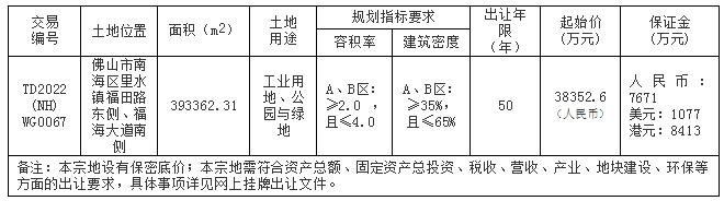 八、自本次公告起至网上挂牌截止期间,如有关于本宗地竞买文件的修改、澄清、说明等将通过网上交易系统以及佛山市南海区人民政府网发布,请有意参与竞买者密切留意。其它未尽事宜,详见本宗地的网上挂牌出让文件。