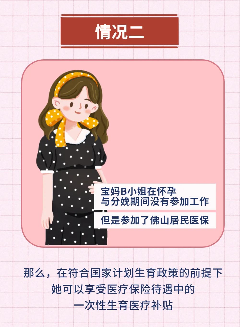 已参加基本医保但未能享受生育保险待遇的女性参保人,符合国家计划生育政策的妊娠分娩的,享受由统筹基金一次性支付生育医疗补贴(含产检):阴式分娩1500元、剖宫产及双胎以上妊娠分娩3000元(以分娩日期核定待遇)。