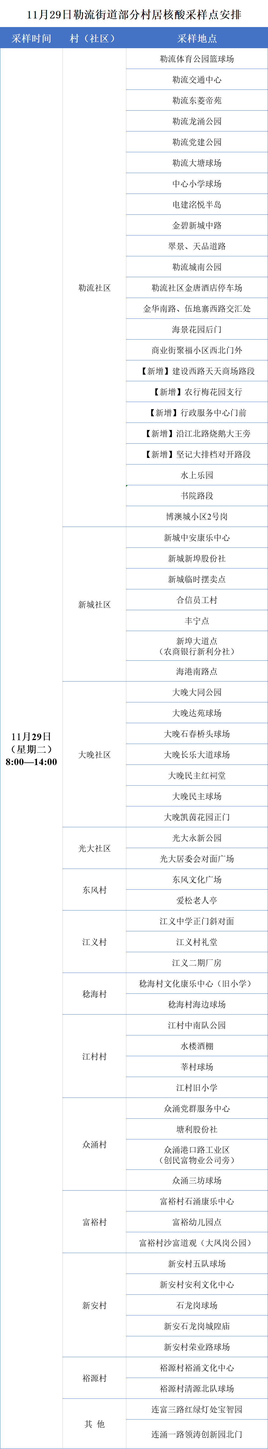顺德勒流街道关于部分村居开展免费核酸检测的通知(11月29日)