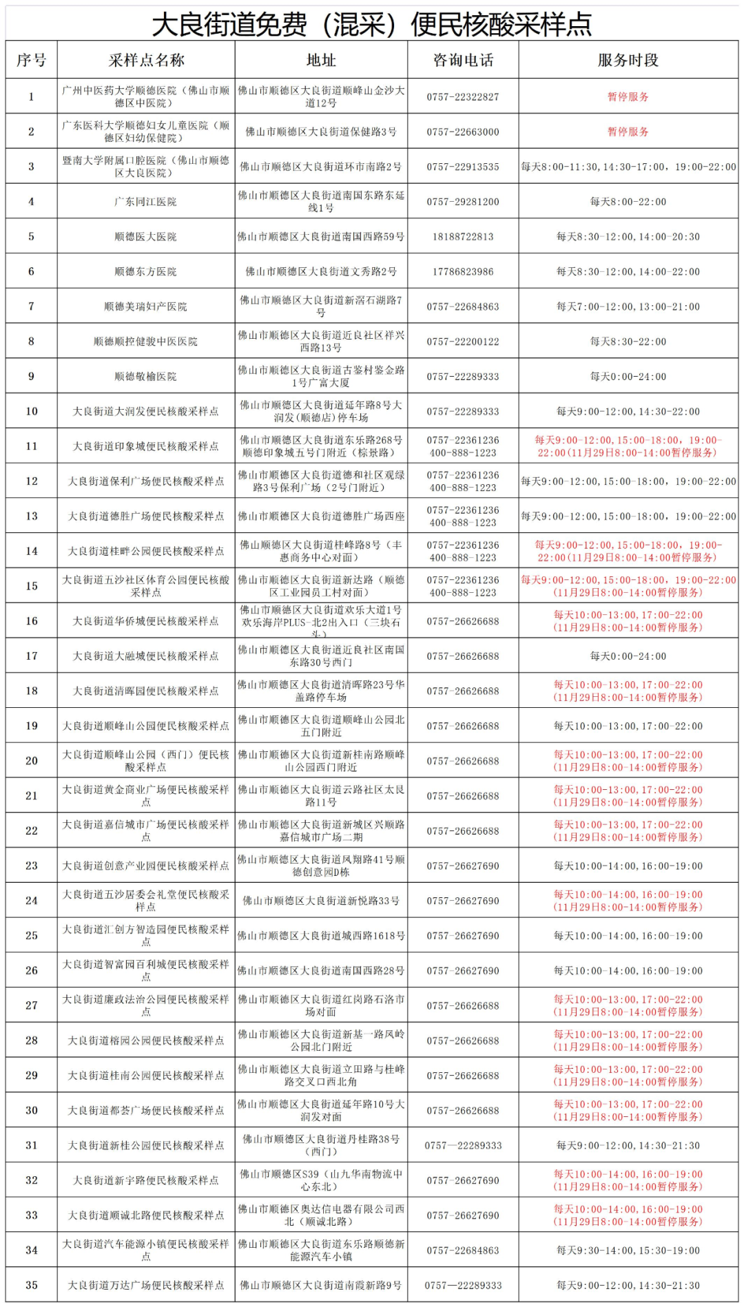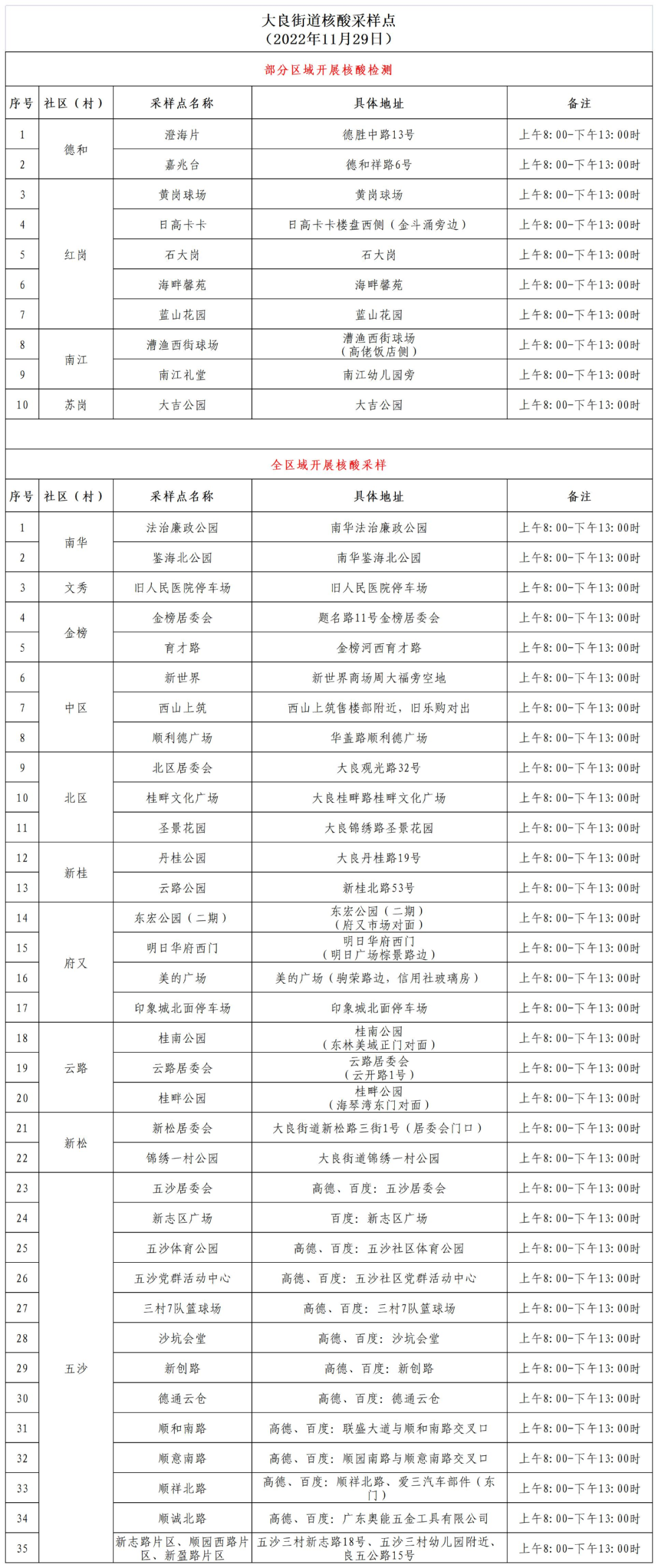 顺德大良街道11月29日部分社区(村)核酸采样安排有调整!