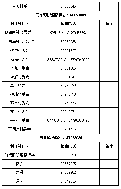 三水区各村(社区)24小时防疫热线电话一览表