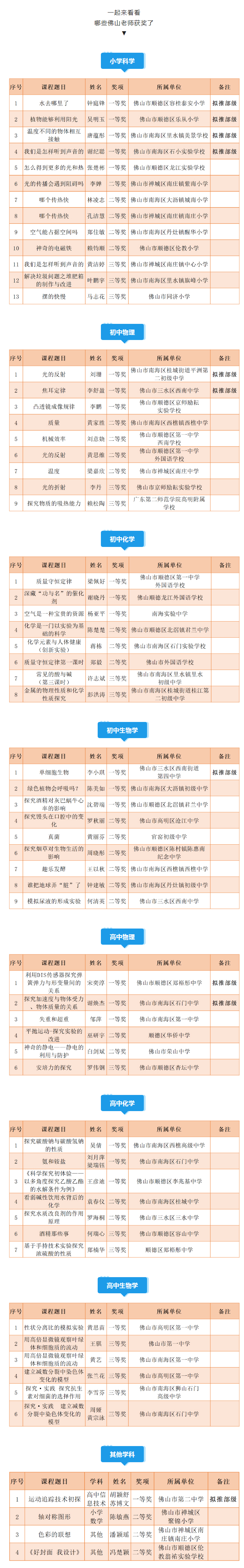 在今年的获奖作品中,全省合共有59节实验精品课例拟获推教育部参与遴选活动,其中佛山市10节一等奖课例上榜,数量位居全省第一。