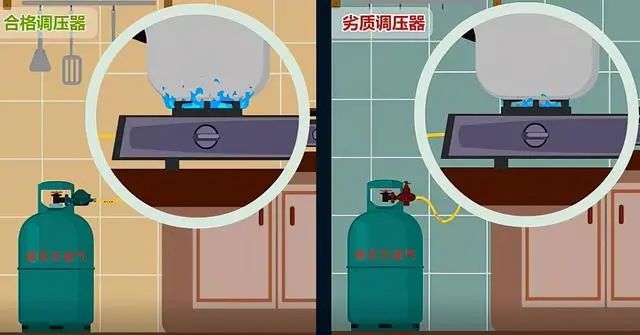 多观察下燃烧时的火焰,当发现火焰忽高忽低时,说明调压器现已损坏,应及时进行替换;当发现有浓郁的燃气味时,应及时封闭液化气瓶,查看调压器是否有漏气现象,如若漏气,应及时停止使用并进行替换。
