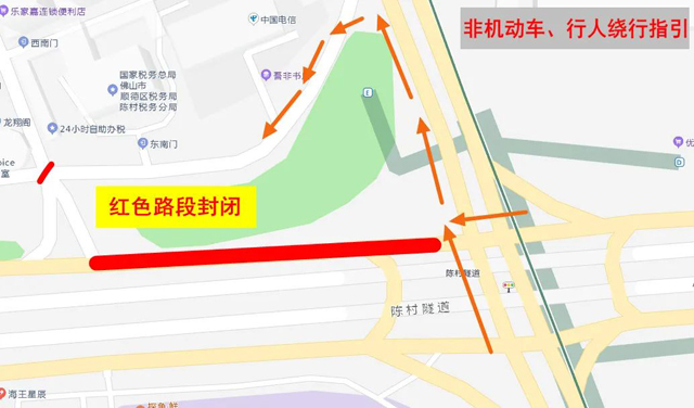 届时,途经佛陈路与白陈路(陈村大道)交汇处往禅城方向的车辆可这样通行(绕行路线见示意图):