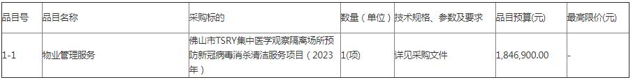 佛山市TSRY集中医学观察隔离场所预防新冠病毒消杀清洁服务项目(2023年)招标公告