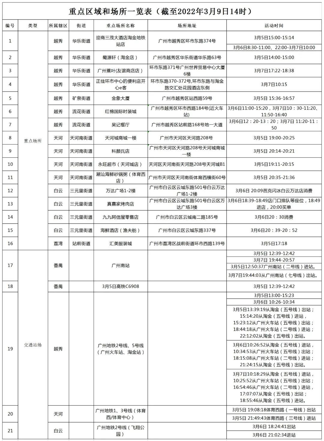 因疫情防控需要,请在下面表格提及的风险时间段到过相关重点区域和场所的人员,立即向所在居委(村委)、工作单位或所住酒店报备,配合社区(村)和疾控部门要求做好核酸检测及其它健康管理措施。