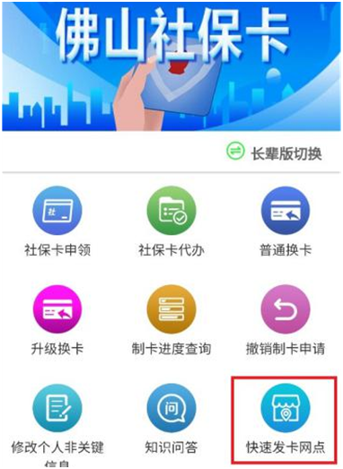 禅城区已增设多家银行快速制卡服务网点,可使用自助发卡机快速办理社保卡,实现“立等可取”。