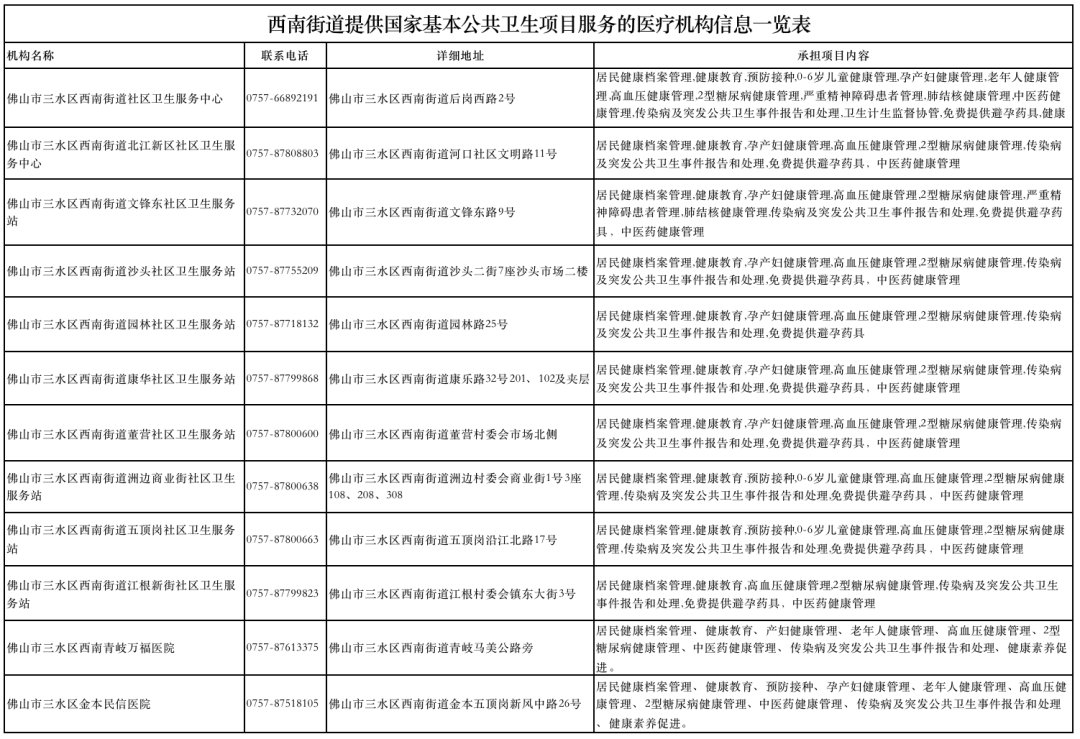 目前国家基本公共卫生项目共31项,佛山市实施26项,其中主要由社区卫生服务中心(卫生院)、社区卫生服务站实施的有12大类。