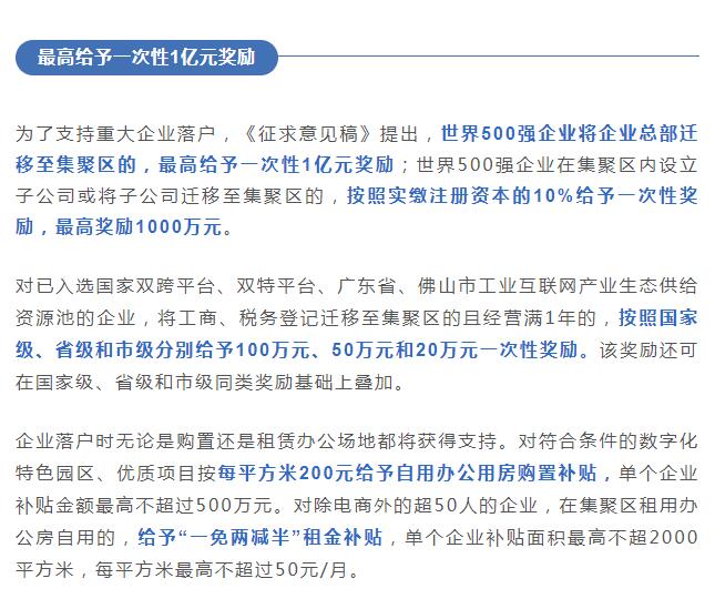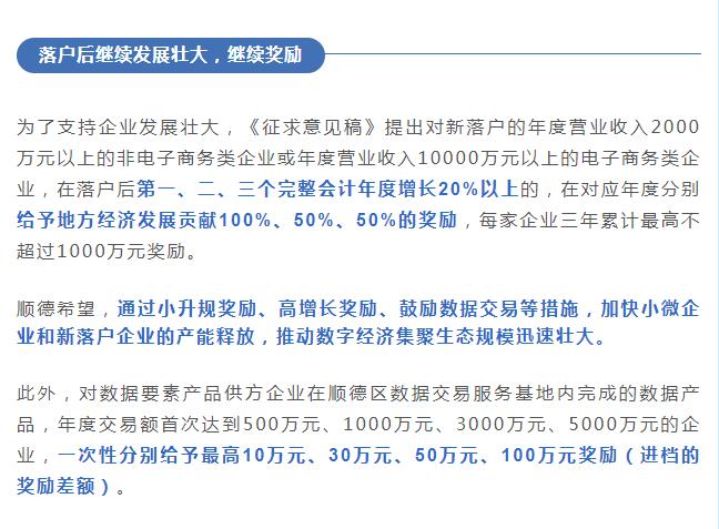 《征求意见稿》共15条,包括实施落户奖励、支持引才留才、推动增量释放等三大方面内容,重点扶持软件业和信息服务业、工业互联网、电子商务(跨境电商)、直播、大数据、数字政务以及与数字产业化和产业数字化相关的其他数字经济。政策将适用于经顺德区政府划定的数字经济集聚区。