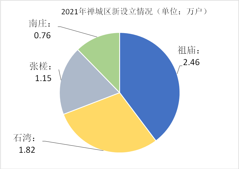 从属地辖区分布来看,2021年祖庙新设市场主体2.46万户,数量排名第一,占全区新设总量的39.65%;其他镇街占比依次为石湾29.40%、张槎18.64%、南庄12.31%。