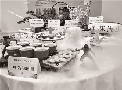 11月10日禅城区“粤菜师傅”职业技能竞赛上演个人赛和团队赛。图为中式烹调师团队赛作品展示现场。