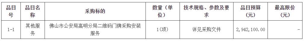 合同包1(佛山市公安局高明分局二维码门牌采购安装服务):
