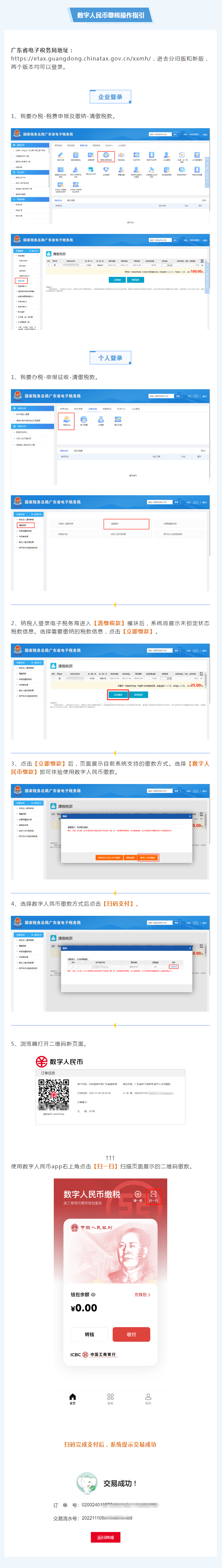 广东省电子税务局已经开通了数字人民币缴纳税费功能。作为税费支付的新方式,数字人民币具有“支付即结算”“可控匿名”“依法可溯”等特征和优势,可实现免手续费、可离线支付、即时到账,能够大幅节约税费缴纳的资金成本和时间成本,让缴纳税费流程更快、体验更优、隐私性更强。下面我们一起看看如何操作啦!