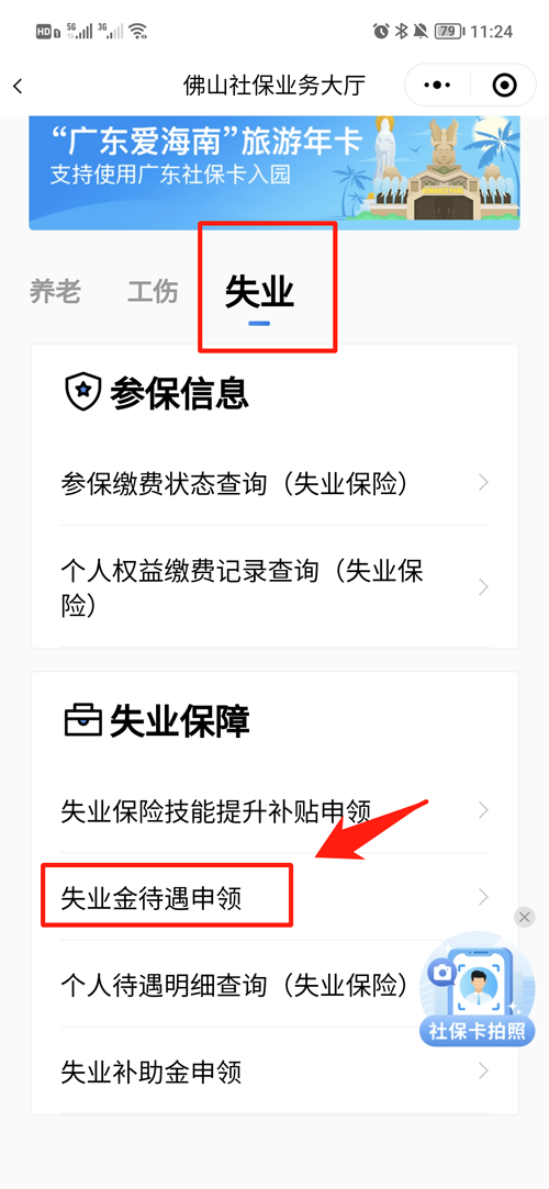 点击【失业】,下滑选择【失业金待遇申领】进入。