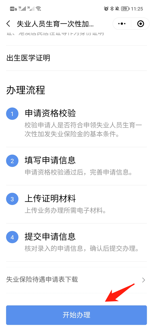认真阅读“办事指南”,尤其是“受理条件”。符合条件的,勾选承诺内容,点击【开始办理】。