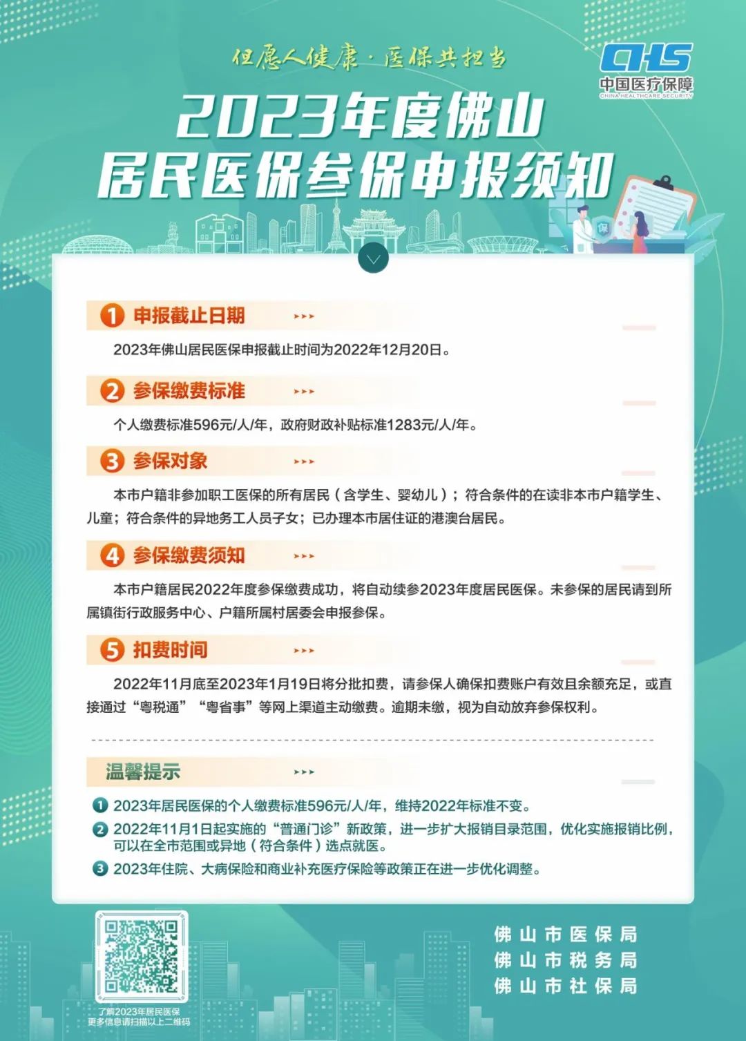 如符合参保资格,请到所属镇街行政服务中心、户籍所属村居委会申报参保(2023年佛山居民医保申报时间:截止2022年12月20日。请尽快进行申报缴费。)。