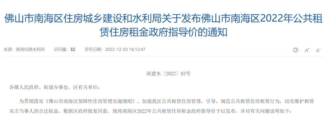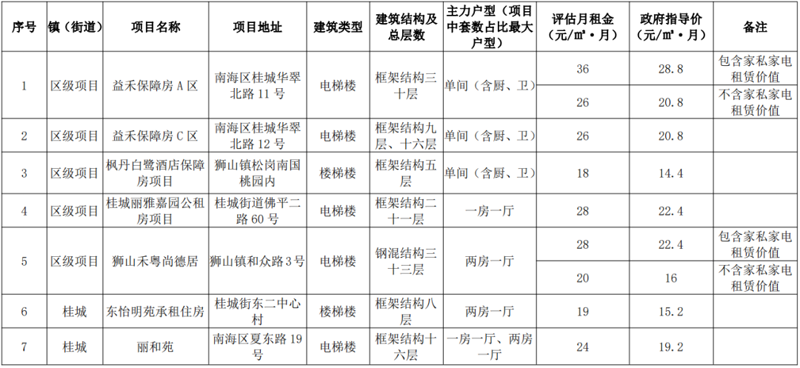 近日,佛山市南海区住房城乡建设和水利局公布南海区2022年公共租赁住房租金政府指导价。