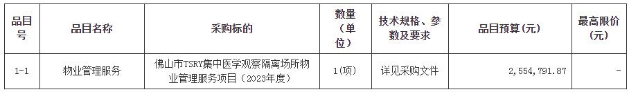 项目名称:佛山市TSRY集中医学观察隔离场所物业管理服务项目(2023年度)