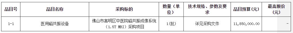 项目名称:佛山市高明区中医院磁共振成像系统(1.5TMRI)采购项目