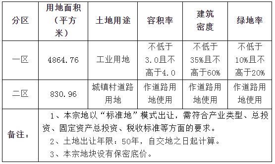 交易编号:TD2022(SD)WG0050;宗地图号:150022-029,版本号:2;地块位置:佛山市顺德区龙江镇西溪集北工业区一期SD-G-03-02-03-17地块;土地面积:5695.72平方米,根据顺规条件(2022)0264号-S《佛山市顺德区建设用地规划条件》的分区,各分区的用地面积和规划指标详见下表: