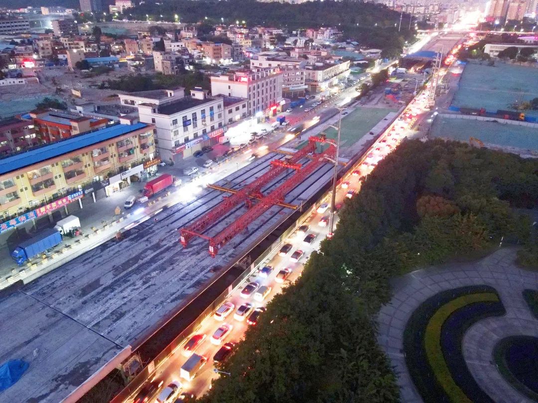南国路二期工程(德胜西路节点)预制梁架设完成
