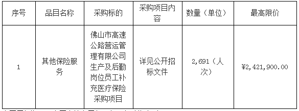 项目名称:佛山市高速公路营运管理有限公司生产及后勤岗位员工补充医疗保险采购项目
