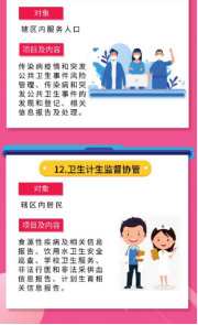 目前国家基本公共卫生项目共31项,佛山市实施26项,其中主要由社区卫生服务中心(卫生院)、社区卫生服务站实施的有12大类。