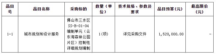 佛山市三水区SS-B-01-04编制单元(云东海森林公园片区)控制性详细规划编制采购项目的潜在供应商应在广东省政府采购网https://gdgpo.czt.gd.gov.cn/获取采购文件,并于 2022年12月26日 10时00分 (北京时间)前提交响应文件。