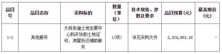 合同包1(大良街道土地发展中心购买协助土地征收、房屋拆迁辅助服务):