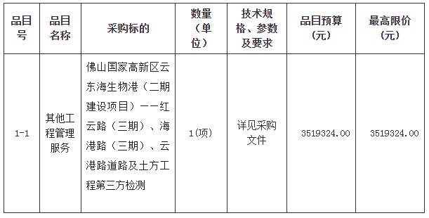 佛山国家高新区云东海生物港(二期建设项目)——红云路(三期)、 海港路(三期)、云港路道路及土方工程第三方检测招标公告
