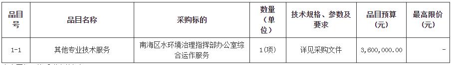 项目名称:南海区水环境治理指挥部办公室综合运作服务