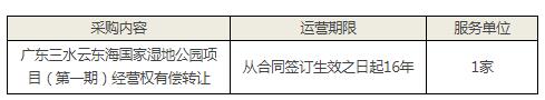 项目名称:广东三水云东海国家湿地公园项目(第一期)经营权有偿转让
