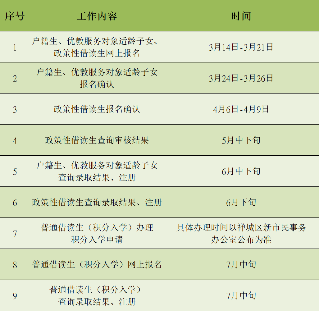 有剩余学位时,普通借读生(积分入学)于7月中旬进行网上报名(具体时间安排以“禅城教育”微信公众号公布为准)。