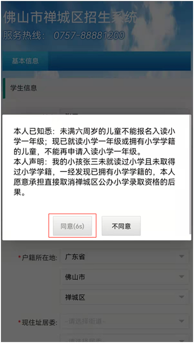 (1)户籍类型选“禅城区户籍”的,需要填报居住信息。