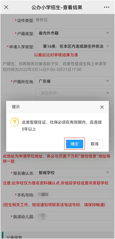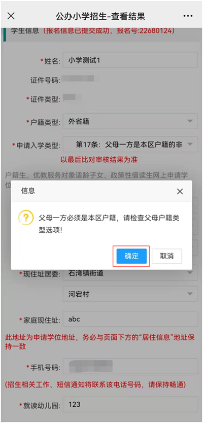 (5)申请入学类型选择“政策性借读生第17条”:父母一方必须是本区户籍。